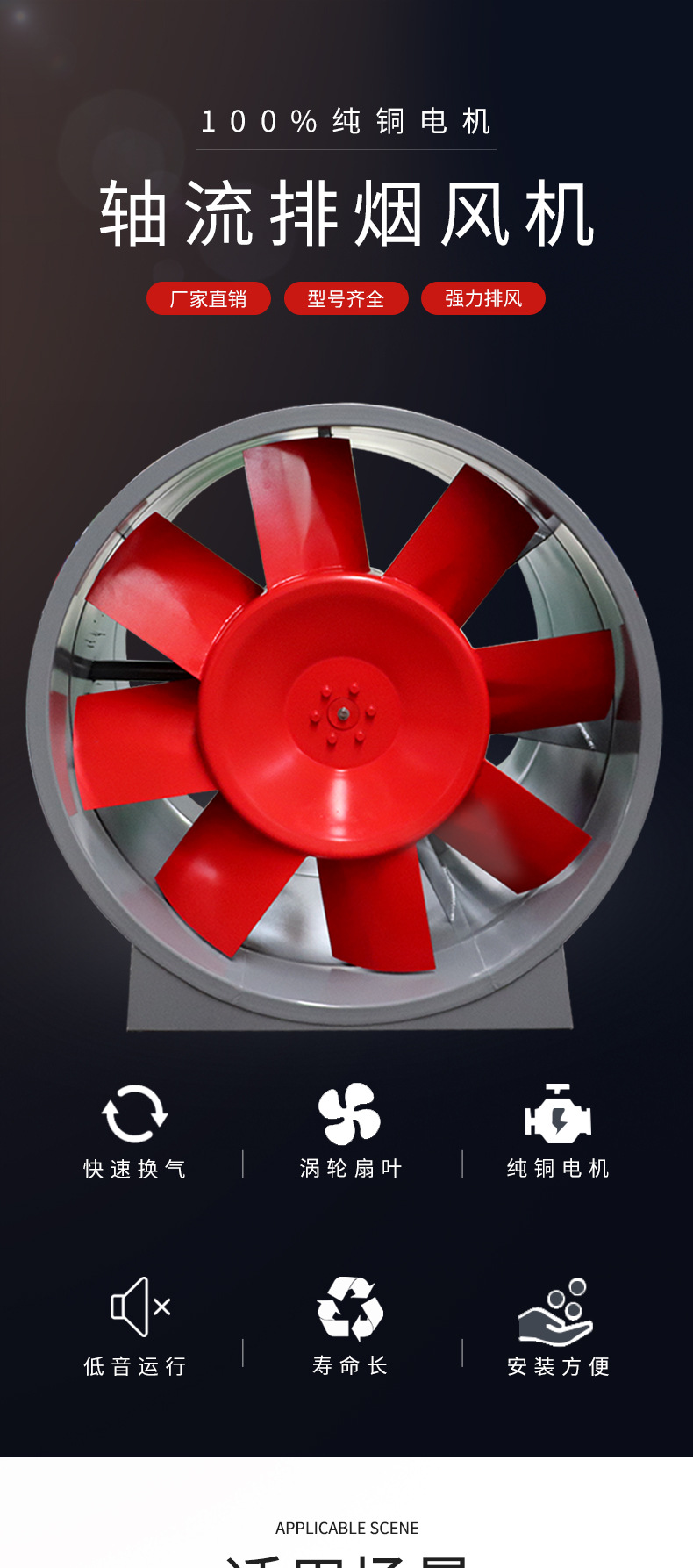 雙速消防高溫排煙軸流風(fēng)機(jī)應(yīng)貯存在干燥的環(huán)境中,避免電